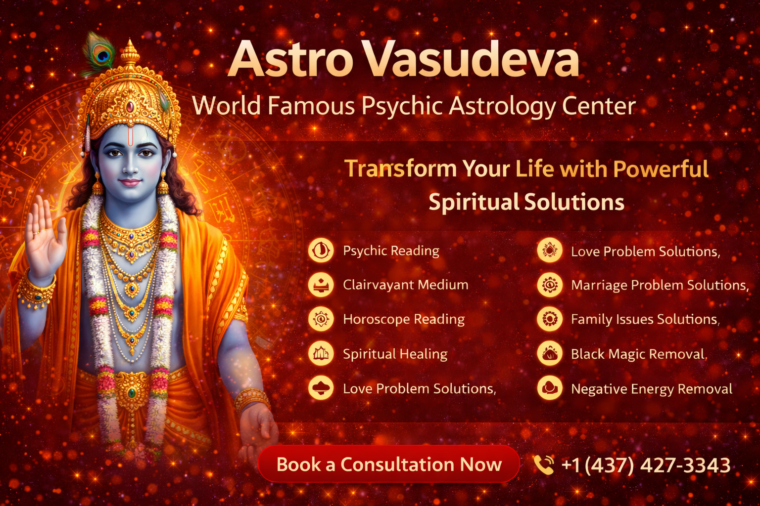 Astro Vasudeva is a trusted and renowned spiritual guidance center helping people find solutions to life’s most difficult problems through powerful astrology and psychic insights. With years of experience in ancient astrological sciences and spiritual healing practices, Astro Vasudeva has helped thousands of people worldwide overcome challenges related to love, marriage, career, family, and negative energies.